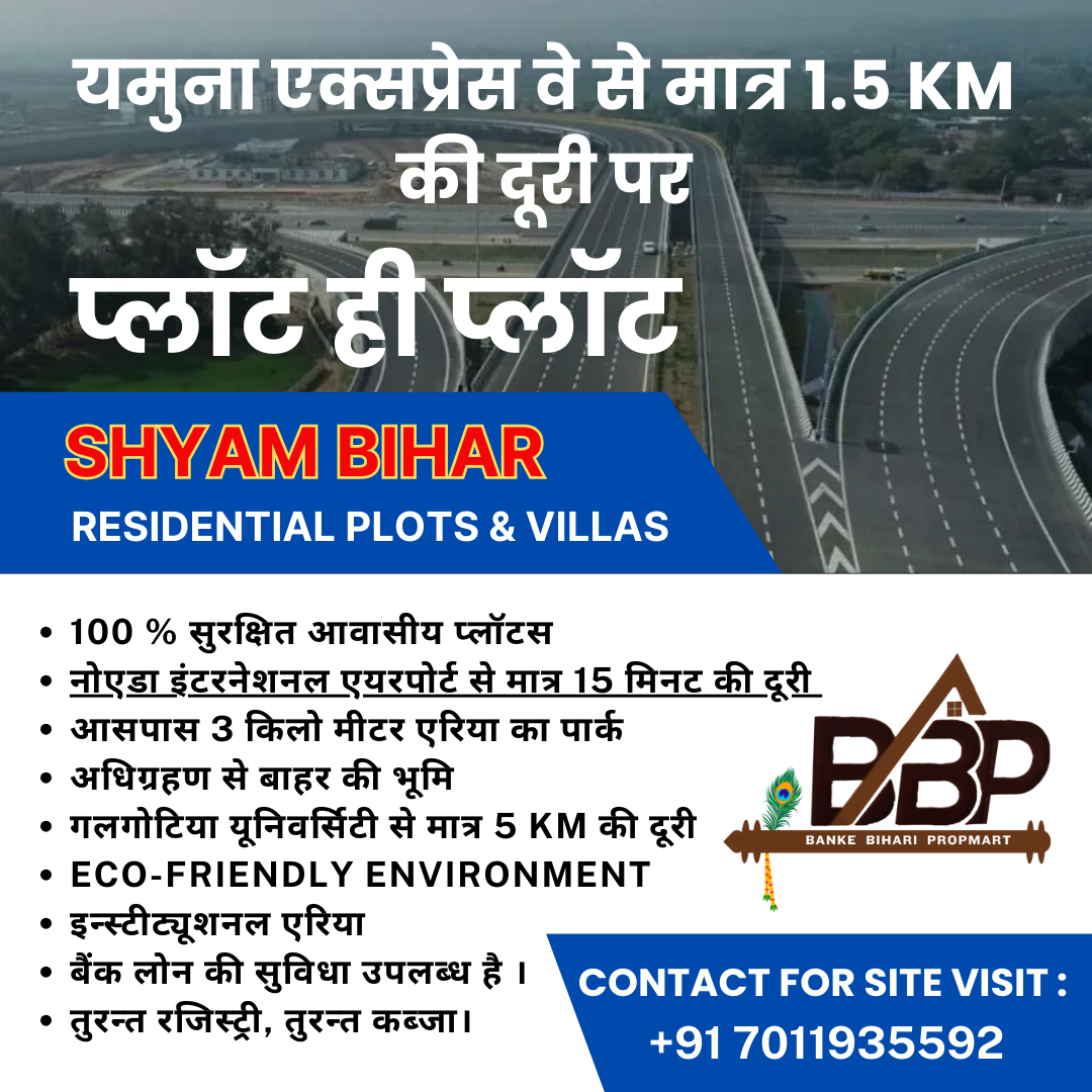 The project SHRI SHYAM VIHAR located on Yamuna Expressway is an enticing combination of tranquility and modern amenities. Its proximity to significant developments like the Noida International Airport, JP Sports City, Film City and a vast institutional area adds immense value to the project. With such a strategic location, residents can enjoy both convenience and a serene environment. It seems like an ideals choice for those seeking a balanced lifestyle amidst quality infrastructure.